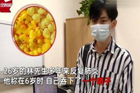 据媒体报导,深圳一26岁林师长教师在自己6岁的吞下了一个哨子,由于年少怕事儿,其时他没敢告知怙恃,一瞒就是20年。但是,多年来林师长教师频频肺炎,时期也多次去医院搜检,但始终没能找到病因。