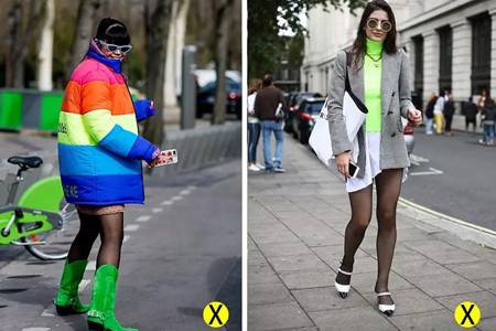 首先是颜色的搭配,浅色裙子、浅色鞋子和黑色打底都非常不配。因为颜色将你的腿部分割开,再好的身材比例也难驾驭,更不要说是一般女生的身高了。突兀的色差让打底袜一跃成为主角。除了浅色还有所有的荧光色搭配都会啊如果你打底变得土气。荧光和自然肤色的搭配才能在亮眼至于不会产生颜色冲突。