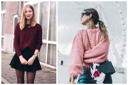 每到年下气氛,女生都会被父母撺掇着买红色衣服。红色热情似火,却难以摆脱俗气的嫌疑。毛衣单品驾驭红色更加保险。毛衣的针织边纹打破红色的艳丽成熟感,显得更加青春精神。红色毛衣更加适合麻花编织,带出立体的层次感。相比正红色棉衣,暗红色降低喜庆感更加百搭,高级感十足。交叉的竖直棱形纹路将身形显得显瘦,面料贴身带有垂坠感,带有英伦质感的版型文艺清爽。搭配黑色绒面的褶裙,将衣角塞入一点到短裙当中,凸显腰线的同时还能抗风,黑色丝袜的搭配显然更有女人味。穿着毛衣的时候最好将袖子向上拉起露出手臂中最细的腕部,配上一副精致优雅棕红色牛皮带手表更有时装品味。毛衣缺不了一条项链作为配饰,交叉双环的图案和毛衣花纹呼应,银色点亮造型修饰脸型小巧。