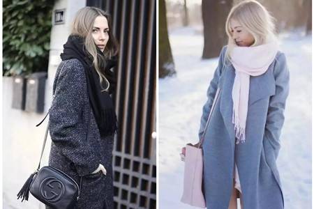 基础色的围巾最百搭,不管什么颜色的外套都能够轻松驾驭。全身黑的穿搭是很多女生喜欢的冬日搭配,非常酷帅而且有着冬天的厚重感。黑白格纹的呢子外套给穿搭带来不好独特的感觉,光面黑色小包流苏挂坠,再搭上一条全黑的围巾。几种不同的黑色带来层次感,让穿搭不会过于死板。浅色发丝减轻了沉重感,成为色彩穿搭的一部分。白色围巾给人纯洁透亮的感觉,配上浅色系的蓝色外套更加给人以温柔的感觉。粉色包包带来青春感十分减龄。但是在冬天选择包括发色的完全淡色系,最好增加红色系妆容,以免显得没有气色过于苍白。对于黑发女生来说比较没有这一种困扰。
