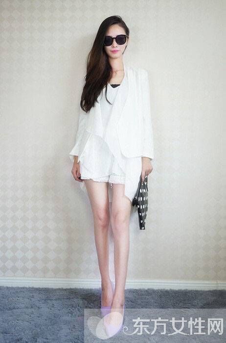 不规则的西装外套,上身气场超强大,同色系内搭,层叠感让小腹小肚腩全隐藏其中,配上一双高跟单鞋,干练优雅尽显。