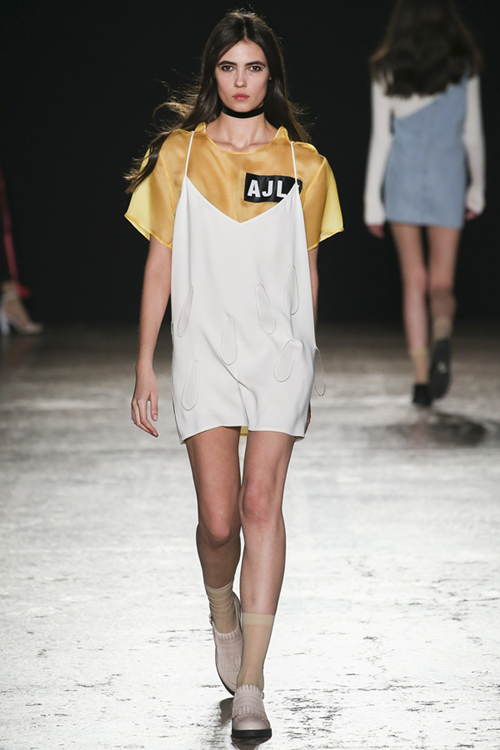 吊带裙配黑T恤酷味十足,印花卡通黑T恤搭配吊带裙,透明眼镜,酷girl的独家穿搭。