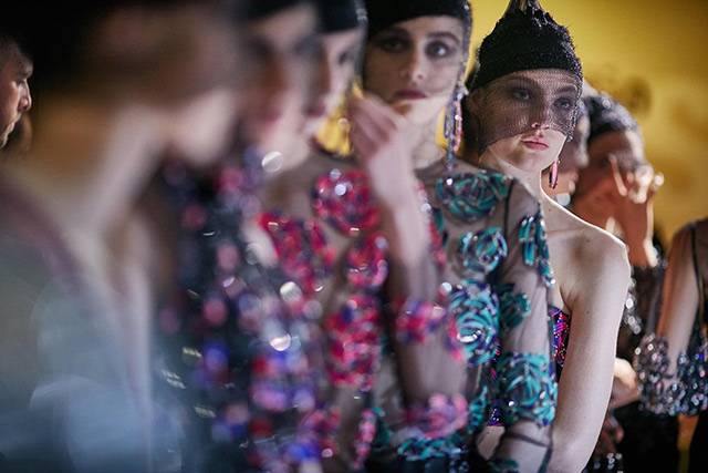 Giorgio Armani 2017/18秋冬高定秀在巴黎夏乐宫(Palais de Chaillot)拉开大幕。Armani老爷子在沿袭以往简洁干练的风格的同时,在这一季也注入了大量的色彩和细密闪耀的珠片,展示着一场纸醉金迷,雍容华贵的浮世绘,呈现出一件件珠光宝气的“严肃”华服。