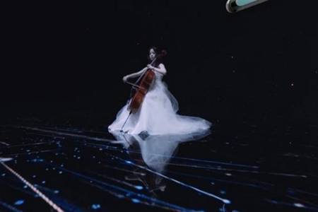 不得不说,星河入梦裙与现场流星真的是美得相互呼应,舞台相当震撼。而,欧阳娜娜嗓音温柔明媚,声线十分适合starry night这首歌,娜比大提琴独奏画面,实在是太让人赏心悦目了。