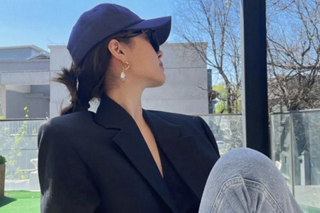 当天杨采钰也在社交平台上更新了自己的街拍美照。从曝光的照片可以看到,杨采钰身穿一件黑色廓形西装,同色深v内搭露出纤细小蛮腰,下半身搭配了一条浅色牛仔裤,棒球帽增加了休闲的气息,再加上耳环和包包的搭配,又不失精致感。