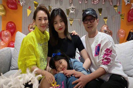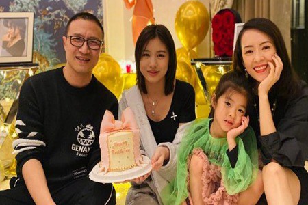 合照里,小苹果还端着戴着粉色胡蝶结的奶油蛋糕。而左边的汪峰留着平头发型,戴着黑框眼镜,穿着黑色针织外衣,一副斯文做派。右边的醒醒穿着绿色纱衣和粉色纱裙,像妈妈一样手撑着脸。而章子怡仍然优雅艳丽,一家人的脸上都弥漫着幸福的笑脸。
