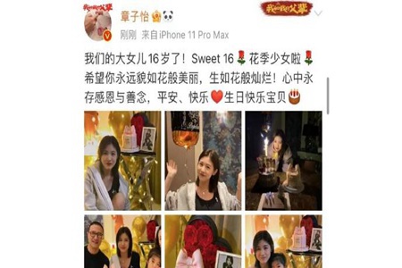只见章子怡配文道:“我们的年夜女儿16岁了!Sweet16,花季少女啦!进展你永久貌如花般艳丽,生如花般光耀!心中永存感恩与善念,安然、康乐,生日康乐,珍宝!”