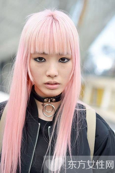 斜刘海粉红色直发稍显成熟:有时候刘海还是能决定你的气质走向的,同样是粉红色长直发,斜刘海的设计就会多几分成熟的韵味!