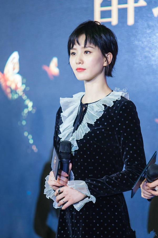 不禁想到上个月《心理罪之城市之光》的发布会才一改长发剪了个耳下内扣短发的她。同样是短发,那个显得活泼俏皮,这个却显得温柔知性内敛。