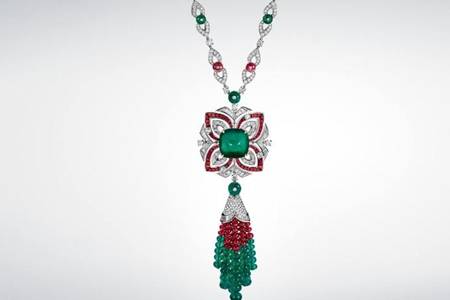 现在,在宝格丽Jannah高级珠宝系列首批作品中,令人无比瞩目的是——一款长项链。据悉,该项链是Sheikha Fatima公主殿下为自己的祖母制作的一款惊艳并富含情愫的作品,中间闪耀着一枚13.38克拉枕形切割哥伦比亚祖母绿。