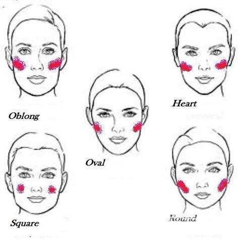圆形脸:从笑肌往太阳穴斜打,如果想要可爱效果可以画圈涂抹。