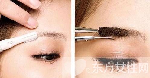 自然眉化妆步骤1:先修理眉形。我们要画好眉毛首先是要固定眉毛的眉型,这样画起来才会更加的简单。使用专用的刮眉刀对眉毛的形状进行修饰,将多余的毛发刮出干净,从而令眼眉变得更加干净,轮廓清晰。然后使用圆形刷头的小刷根据眉毛的生长走向进行梳理,遇到较长的眉尾部分可以使用眉剪将其剪掉。