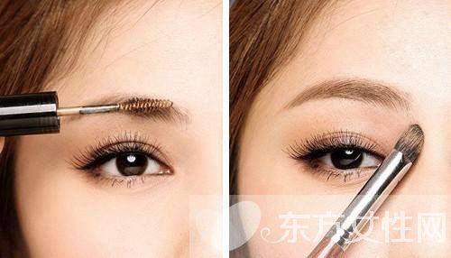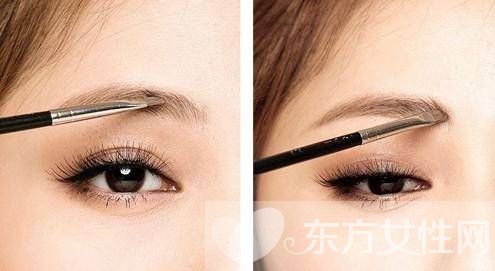 自然眉化妆步骤2:勾勒整体眉形现在教大家怎样用眉粉画眉毛,眉刷取比发色浅一号,然后从眉头开始扫向眉尾,将想要的眉形大致地勾画出来。然后使用眉刷在眉头的位置进行逆向的横扫,目的是要让这部分的颜色变浅,这样才能让整体的眉毛颜色能够过度的比较自然。