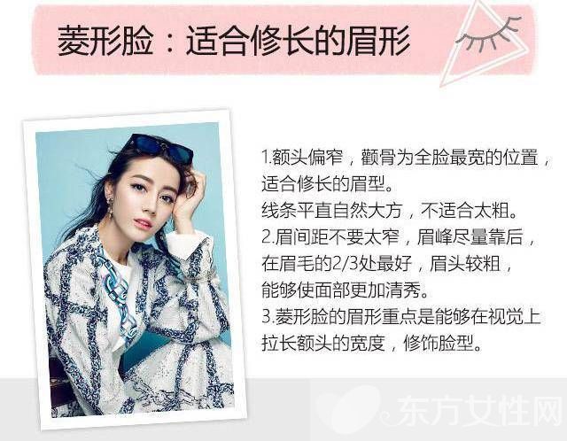 菱形脸通常是适合修长的眉形了,化妆的技巧也很简单,可以看下图片的介绍就可以很明确了。