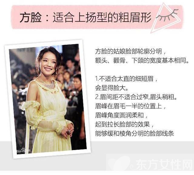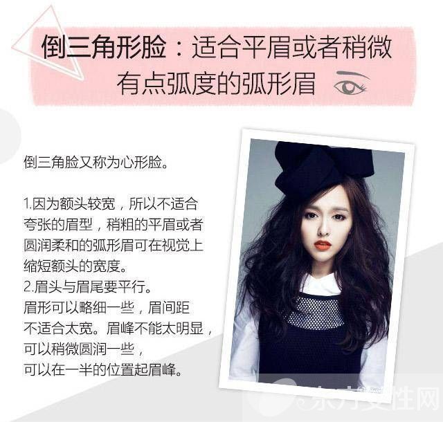我们再来看下我们的倒三角脸型,这个脸型一般是比较适合平眉或者是有点弧度的眉形,因为这样的话才能更显得气质出来!