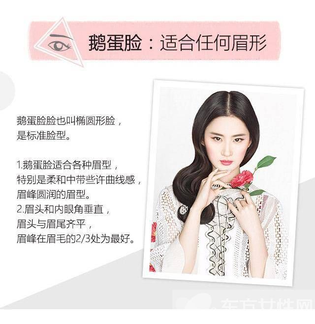 我们先来说下我们常见的鹅蛋脸的眉毛化妆技巧!因为我们鹅蛋脸通常是属于椭圆脸,所以也是我们常说的标准脸。