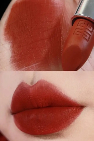 这支红丝绒是栗子红茶棕的色彩,上嘴异常顺滑,而且这个色调可以说是很百搭的,黄黑皮都很合适。