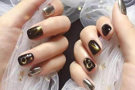 金属系猫眼美甲,美甲最多见的一种式子了,2021年照旧盛行。该系列美甲由于根蒂根底色调都是以黑色、灰色、银色等对比偏暗色系作为打底,并配以金箔、小配饰作为点缀,所以带来的金属质感会更强烈些,看起来十分具有高级感,异常合适气场强年夜的御姐气势气派女生。