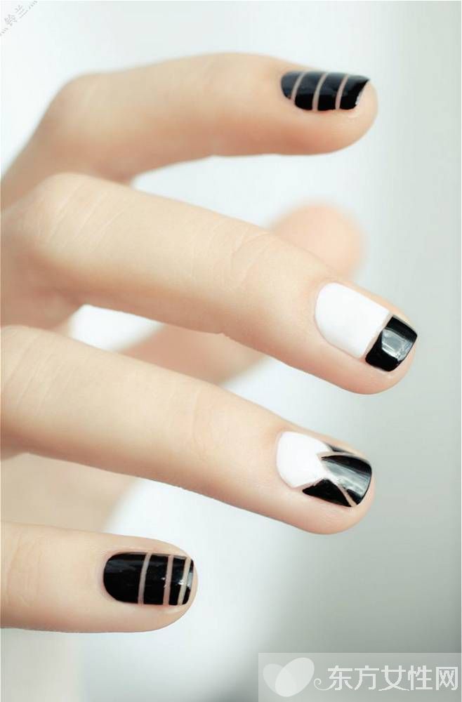 和传统的柔美花朵曲线不同,几何风格的彩绘指甲用它利落的线条带来独特的秋冬时髦感,并能让清新的颜色看起来更酷,尤其适用于搭配深色而线条简单的冬季外套,在线条的统一和质感的混搭方面做到完美和谐。