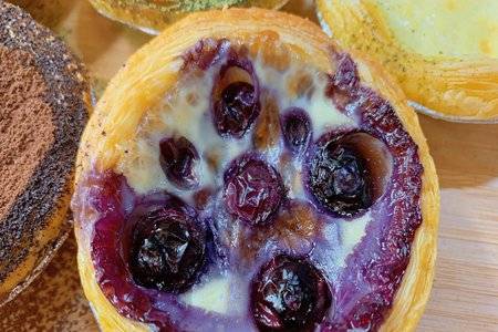 步骤:将淡奶油、牛奶、糖、蛋黄同化搅拌平均,接着将糯米粉、水(牛奶)同化到微微活动的状态,在每个蛋挞皮里放一勺糯米糊,到场调好的蛋液,最后放入200°烤箱,烤25-30分钟便可!
