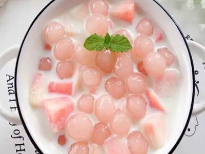 你需要的准备食材是桃子,木薯淀粉,还有柠檬。把桃子皮到场清水,再加糖,再挤点柠檬汁煮出色彩,就把桃子皮捞出;在煮好的水里,倒入木薯淀粉,进行揉团,然后把其揉成小团子。重视可以撒上一些木薯淀粉,避免小团子之间出现粘连。锅煮至水沸腾,便可以把小团子倒进去,接着是过凉水,蜜桃啵啵就做好了。最后,就是在碗里切蜜桃块,放入蜜桃啵啵,还有倒入椰汁便可以食用了。