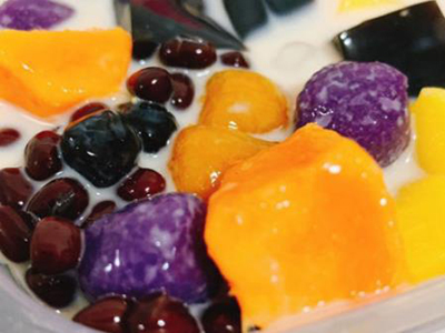 首先我们需要准备食材,200克的牛奶,20克的糖,木薯粉需要20克,你的椰浆50克的炼乳。然后在牛奶中加糖跟木薯淀粉,用小火进行加热,这个时刻需要用打蛋器一向的搅拌,直至浓稠,若是不搅拌,可能会出现粘底的现象。然后把搅拌好的木薯淀粉放进冰箱进行保鲜冷藏,接着便可以把芋圆倒入滚烫的水中进行煮开煮熟,把煮好的芋圆倒入冰水中,让口感加倍的Q弹;这个时刻可以把芒果跟椰浆还有牛奶同化在一路,在破壁机中打成糊状,然后将冰箱中的麻薯、芋圆和椰芒混在一路。这份甜品整体给人的感受是甜甜的,芋圆的口感QQ弹弹,搭配着麻薯有嚼劲的口感和椰芒的那种甜甜酸酸。