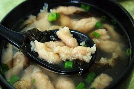 福州鱼丸:这是富有福建福州地方特点的小吃之一,是用鳗鱼肉、沙鱼肉或用马鲛鱼肉剁蓉,加甘薯粉(淀粉)搅拌平均,再包以猪瘦肉或虾等馅制成的丸状食品。