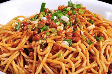 面条事前煮熟,过冷和过油后,再淋上油、醋、辣椒油菜等配料,吃时面条纤细爽滑有筋道、酱汁喷香浓味美,色泽黄而油润,喷香而鲜美,有种很爽口的辣味,诱人食欲。