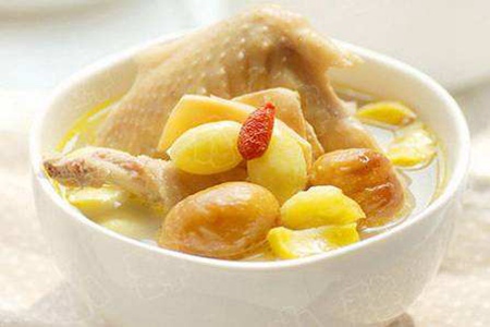 制做体式格局:将鸡洗净,然后宰成块,入锅中焯去血水备用。热锅放入少量油, 到场土鸡块进去翻炒,翻炒至无水分时到场姜片进去继续翻炒,翻炒至鸡块微微出油,到场清水,年夜火烧开将倒入沙锅中。将泡好的姫菇与板栗一路放入锅中,然后盖上盖子,慢火煲上两小时,待鸡肉耙糯时,到场适当的盐和胡椒粉枸杞调味便可。