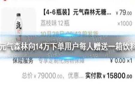 近日,元气森林一淘宝商号因优惠设置毛病,原价79元一箱(12瓶)的气泡水,标价3.5元被买爆。其毛病的价钱导致该款气泡水销量暴增30万单,最年夜的订单达41000箱,据称商号或损失踪200多万元。