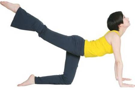 手掌分开支撑于垫子,双膝垂直地面脚后背伸直呈四角板凳状。随着吸气鼓出小腹塌腰背,让左腿平行于地面,两侧臀部保持同一高度不要外翻。将产后松弛的骨盆肌肉收紧,同时伸直右臂掌心朝下。呼吸的时候低头拱起背部感受关节的放松拉伸肩部,然后收回左膝盖向面部靠拢,保持两秒之后恢复到板凳式。然后进行另一侧的练习。