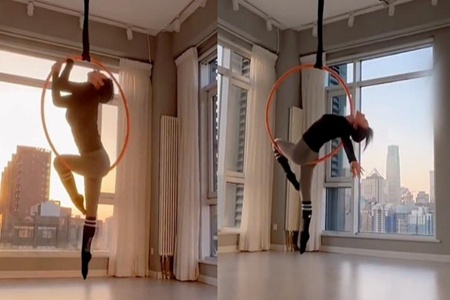 下一秒柳岩赓续升级空中瑜伽的难度,连续做几组吊环瑜伽动作。只见她将腿部绷成直线,上身则讲求天真轻松完成瑜伽动作。另外柳岩神气放松沉醉在活动中,随着动作转变,她肆意展露出傲人上围和臀部曲线,连带着周围弥漫着活力欢悦的气味。